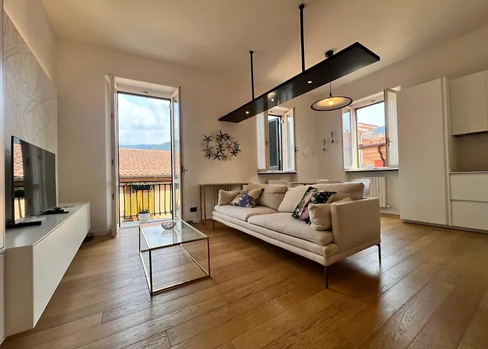 Oro Apartment, Rapallo, 2Bedroom, 2Bathroom Apartment With Free Garage At 800 Mt, Lift, Shared Terrace, Balcony, Wi-Fi, Air Conditioning, The Ideal Choice For A Relaxing And Exciting Coastal Escape dispose d'un balcon et d'un salon, ainsi que de conforts tels qu'une climatisation.